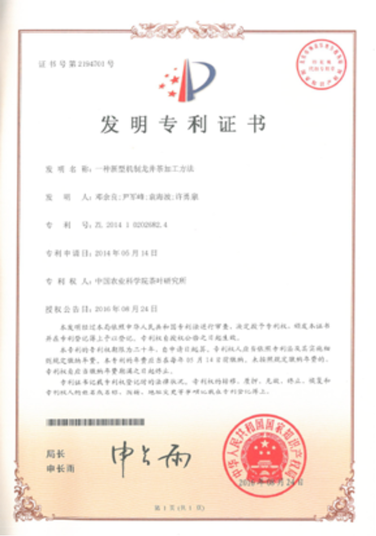 該技術全程采用機械加工,根據茶葉的滋味、香氣、外形的形成機理,通過熱傳導、力學等途徑,解決了當前龍井茶生澀、高火現象嚴重,沖泡后不易下沉的問題。