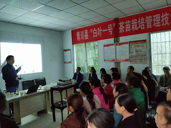 專家組一行克服山高路遠(yuǎn)和道路不便的困難,深入到該縣的沙洲、關(guān)莊和瓦礫3個(gè)鄉(xiāng)鎮(zhèn)的主要種植村,開(kāi)展了3場(chǎng)技術(shù)培訓(xùn)。專家組從本次捐贈(zèng)茶苗的由來(lái)和意義、“白葉一號(hào)”的品種特性、建園技術(shù)及苗期管理技術(shù)等幾個(gè)方面進(jìn)行了通俗易懂的講解,并與當(dāng)?shù)氐闹鞴懿块T領(lǐng)導(dǎo)、鄉(xiāng)鎮(zhèn)領(lǐng)導(dǎo)和參與培訓(xùn)的種植戶等進(jìn)行了深入交流和面對(duì)面的溝通,還發(fā)放了“白葉一號(hào)”種植技術(shù)卡片。3個(gè)鄉(xiāng)鎮(zhèn)的主要種植戶和市、縣、鄉(xiāng)鎮(zhèn)的農(nóng)業(yè)技術(shù)人員共150多人參加了培訓(xùn)會(huì)。本次培訓(xùn)將為青川縣的“白葉一號(hào)”種植工作拉開(kāi)序幕。