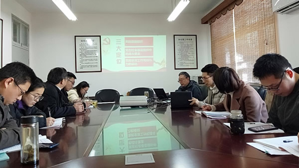 2018年12月29日,培訓(xùn)中心黨支部組織召開支部大會,支部書記帶領(lǐng)全體黨員學(xué)習(xí)《中國共產(chǎn)黨支部工作條例(試行)》,重點學(xué)習(xí)了黨支部的“三大定位”、“七項職責(zé)”,支部工作的“五條原則”,黨支部的“八項基本任務(wù)”以及組織生活的“六個要求”,加強了對《條例》重點內(nèi)容和核心要義的理解。隨后,全體黨員共同學(xué)習(xí)了所黨委辦公室最新編印的《廉潔從業(yè)簡明手冊》,強化認識,明確底線,構(gòu)筑拒腐防變的思想防線,時刻繃緊廉潔自律這根弦,扎實做好本職工作。