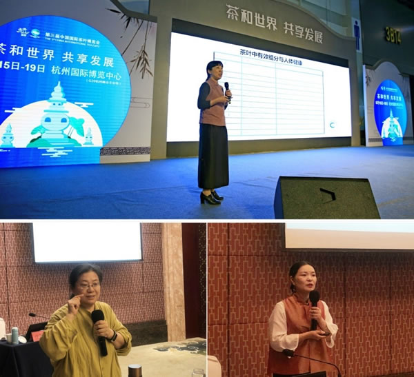 中國茶葉學(xué)會(huì)常務(wù)副秘書長(zhǎng)、茶藝專業(yè)委員會(huì)主任委員、我所周智修研究員以“如何泡好一杯茶”為題,分享了茶與美好生活的感悟。周智修研究員從六大茶類說起,以科學(xué)研究分析數(shù)據(jù)為依據(jù),闡述了喝茶對(duì)身體的益處,并將生活中如何泡好一杯茶的技巧與觀眾分享。茶藝專業(yè)委員會(huì)副主任委員、湖南農(nóng)業(yè)大學(xué)朱海燕教授,以“中國茶道·茶禮”為題,重點(diǎn)從中國茶道禮儀的演變、茶道禮儀的基本特征以及新時(shí)代下中華茶禮儀文化開啟的新篇章等三個(gè)方面分享了茶道禮儀的研究成果。茶藝專業(yè)委員會(huì)委員、中國社會(huì)科學(xué)院歷史研究所沈冬梅研究員,從貢茶的產(chǎn)生與制作工藝、點(diǎn)茶技藝與茶具等角度講述了宋代茶文化的興盛。各位專家精彩而又接地氣的講述,深深吸引了現(xiàn)場(chǎng)的諸位茶友,更贏得了陣陣掌聲。
