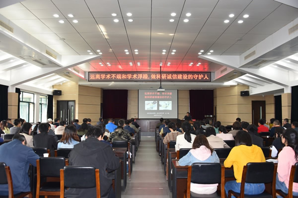 王小波書記圍繞什么是學術不端行為、全球各國學術不端行為表現、中國學術不端背后的誠信缺失、以及如何營造良好的科研生態等作了講解。王書記通過對國內外典型案例的剖析,指出偽造科研數據、抄襲侵占他人學術成果、篡改實驗數據等學術不端行為嚴重敗壞科研工作者的聲譽,阻礙科學進步發展,同時也損害了社會公共利益。他強調,作為科研工作者要深刻領會遵守科研誠信和學術道德的重要意義,提高思想認識,信守科研道德,大力弘揚科學家精神,自覺抵制學術不端行為,營造良好的科研生態環境。