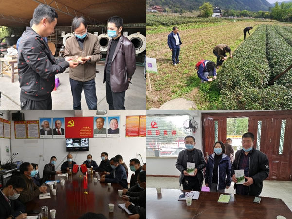 在省科技廳結(jié)對幫扶的同盟村,專家團隊針對茶葉采摘、茶樹病蟲害防治、茶園建設(shè)管理等工作,為茶農(nóng)現(xiàn)場進行答疑解惑。隨后,團隊專家與當(dāng)?shù)仡I(lǐng)導(dǎo)和茶企負(fù)責(zé)人開展座談,大家各抒己見,共開良方。專家們認(rèn)為,茶產(chǎn)業(yè)作為同盟村脫貧振興的重要產(chǎn)業(yè),應(yīng)因地制宜打造“小而精”、“小而美”的茶園和特色茶葉品牌,以“茶+”的方式帶動其他產(chǎn)業(yè)的共同發(fā)展。會后,建立了“同盟村茶產(chǎn)業(yè)”微信工作群,方便茶農(nóng)與技術(shù)人員的聯(lián)線對接,我所唐美君研究員向茶農(nóng)贈送了《香茶生態(tài)茶園種植管理技術(shù)手冊》。