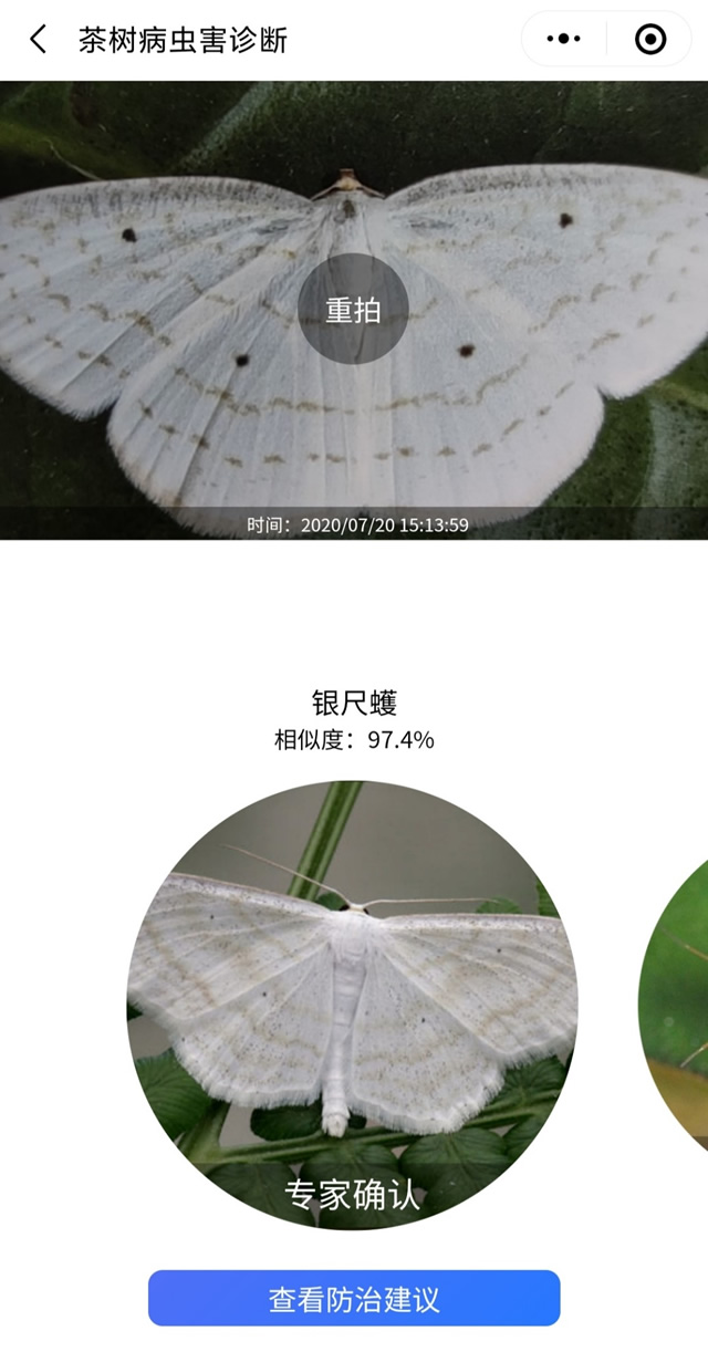 “茶病茶蟲”智能識別系統目前已覆蓋茶園間常見病蟲害、生理性病害及天敵130余種,農戶可田間隨手拍照識別,系統將在數秒內給出診斷參考,并提供專業防治建議,操作流程非常簡單。