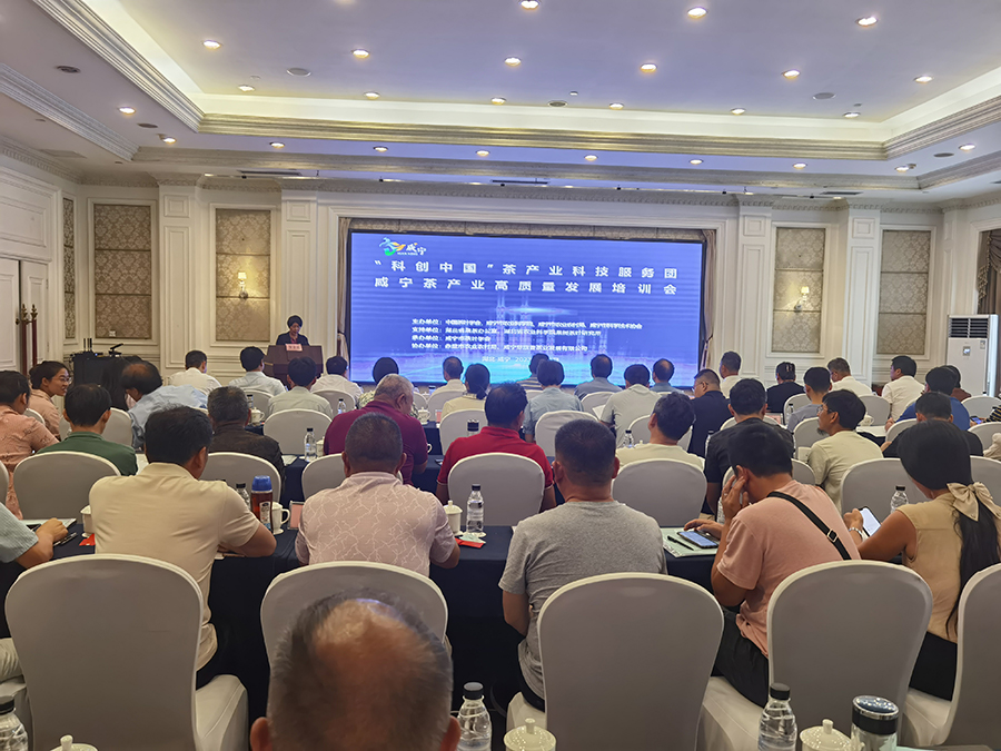 7月4-5日,為進(jìn)一步推進(jìn)咸寧生態(tài)茶園建設(shè),助力青磚茶提質(zhì)增效及品牌推廣,促進(jìn)咸寧茶產(chǎn)業(yè)高質(zhì)量發(fā)展,“科創(chuàng)中國(guó)”茶產(chǎn)業(yè)科技服務(wù)團(tuán)咸寧茶產(chǎn)業(yè)高質(zhì)量發(fā)展培訓(xùn)會(huì)在湖北省咸寧市舉行。會(huì)議由中國(guó)茶葉學(xué)會(huì)等主辦,來自咸寧六個(gè)縣(市、區(qū))農(nóng)業(yè)農(nóng)村部門茶葉業(yè)務(wù)負(fù)責(zé)人及企業(yè)代表共計(jì)100余人參加了培訓(xùn)。培訓(xùn)會(huì)開幕儀式由咸寧市政府副秘書長(zhǎng)廖朝暉主持,咸寧市政府副市長(zhǎng)劉復(fù)興、科協(xié)黨組書記程朝陽(yáng)等參加開幕式并致辭。